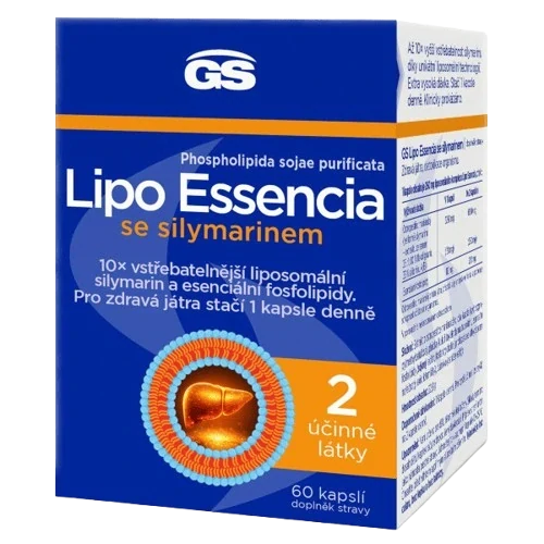GS Lipo Essencia se silymarinem je doplněk stravy, obsahující unikátní kombinaci esenciálních fosfolipidů a silymarinu s 10x vyšší vstřebatelností pro zdravá játra a detoxikaci organismu.