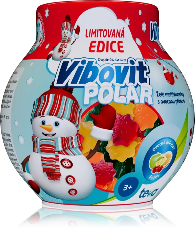Vibovit Polar jelly je doplněk stravy ve formě želé multivitamínů pro děti od 3 let, obsahující komplex 9 vitamínů a minerálních látek.