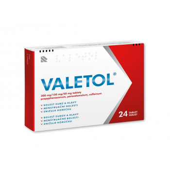 Léčivý přípravek Valetol obsahuje kombinaci látek, které působí proti bolesti různého původu, snižují horečku a léčí zánět. Protibolestivý účinek nastupuje asi půl hodiny po užití přípravku a trvá několik hodin. Valetol je možné užívat: