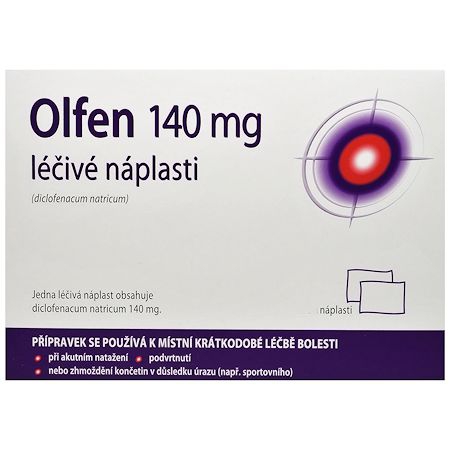 Olfen 140 mg léčivé náplasti je přípravek, který působí proti bolesti. Patří do skupiny přípravků nazývaných nesteroidní protizánětlivé léky (NSAID).