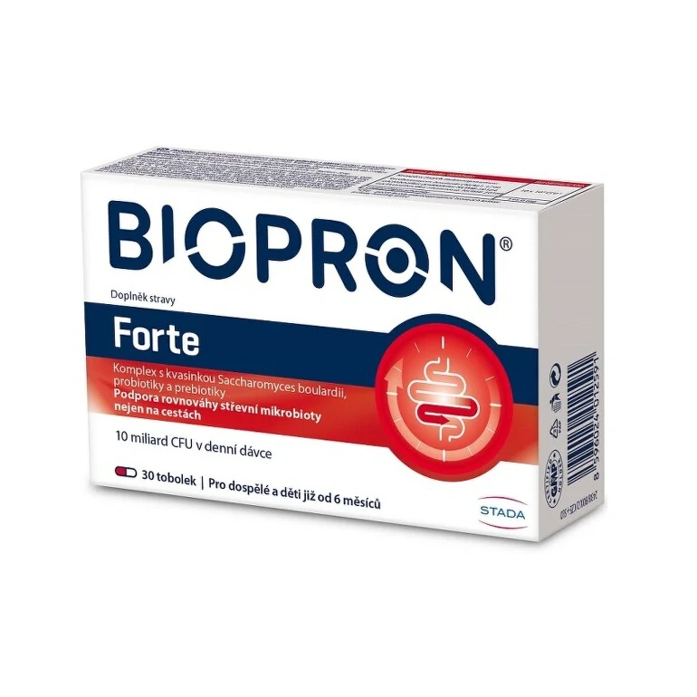 Biopron Forte je doplněk stravy ve formě tobolek, který obsahuje jedinečnou kombinaci probiotických bakterií (Lactobacillus acidophilus, Lactobacillus rhamnosus) a probiotických kvasinek Saccharomyces boulardii doplněnou o prebiotické fruktooligosacharidy. Přípravek mohou užívat dospělí a děti již od 6 měsíců.